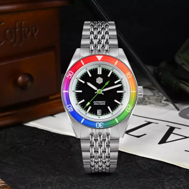 The rich colors and luminous features make it not only a tool for precision timing but also a piece of wearable art. With the sapphire crystal and sturdy stainless steel case, this watch can withstand the rigors of daily life while maintaining its sleek and polished look. The automatic mechanical movement ensures you never have to worry about changing batteries, keeping you ready for adventure at all times.